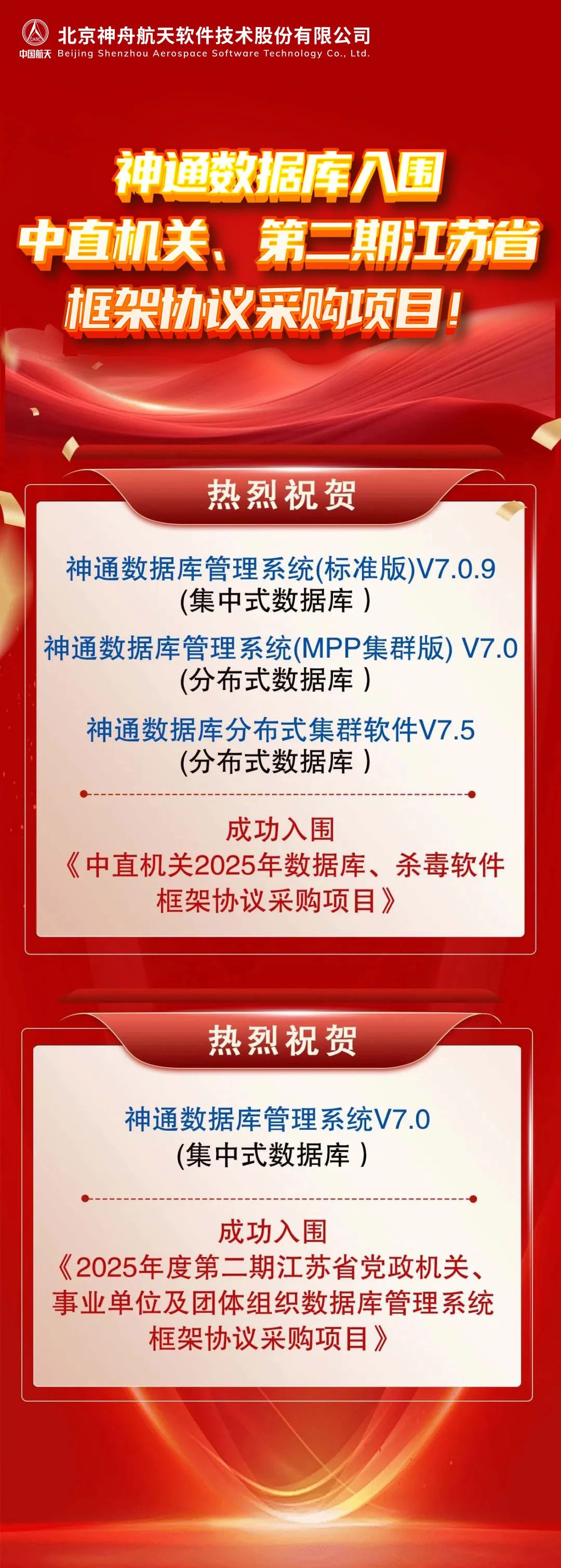 神通數(shù)據(jù)庫入圍中直機(jī)關(guān)、第二期江蘇省框架協(xié)議采購項目!